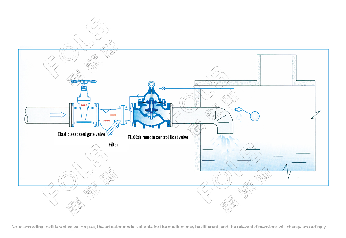 The valve is composed of main valve 2, needle valve 3, ball valve 1 and floating ball valve 4. The remote control float valve can effectively control the liquid level of the water tower or water tank, cut off or open the valve core to input the water flow or prevent the water flow from leaking. The liquid level control is accurate, the water level is not disturbed by pressure fluctuations, the opening and closing are tight without water leakage, the floating ball is flexible, and the maintenance is simple. (the control floating ball is installed separately from the main valve), which is applicable to the automatic water supply system of water tanks, pools and towers in industries, mines, enterprises and high-rise buildings.