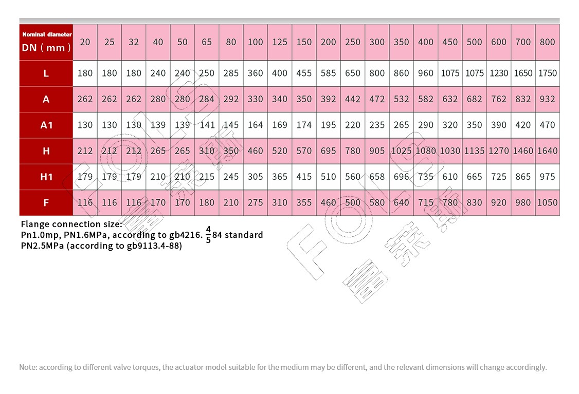 Nominal Pressure 1.0 MPa 1.6 MPa 2.5 MPa
